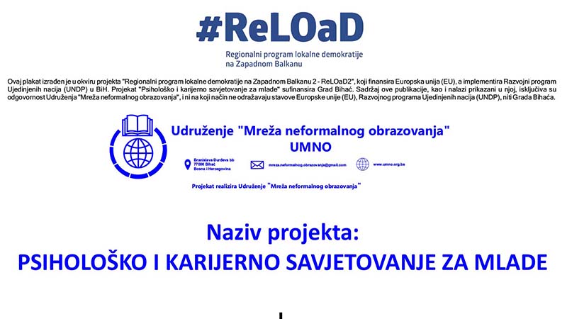 Udruženje „Mreža neformalnog obrazovanja“ na području Grada Bihaća od 01.06.2022. do 28.02.2023. godine provodi projekat pod nazivom „Psihološko i karijerno savjetovanje za mlade“...